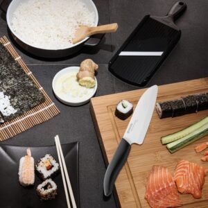 Kyocera naži un rīki izgatavoti, izmantojot keramikas materiālu, kas ir ārkārtīgi izturīgs un asu, nodrošinot ilgstošu lietošanu un precizitāti griešanā. Šie izstrādājumi ir piemēroti gan mājas, gan profesionālai lietošanai, tāpēc tie ir populāri gan kulināriem, gan virtuves entuziastiem visā pasaulē.