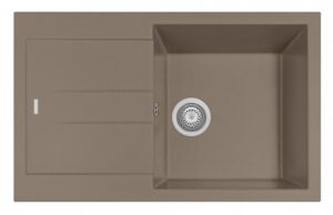 - Akmens masas izlietne: Grezna un stilīga izvēle, kas virtuvei piešķir solīdumu. Akmens masa tiek izgatavota no granīta daļiņām un akrila sveķiem, tādēļ tā ir īpaši izturīga pret skrāpējumiem, karstumu (līdz 280°C) un traipiem. Turklāt šīs izlietnes lieliski slāpē ūdens radīto troksni.