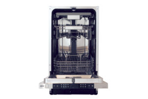 - Šaurā (trauku mazgājamā mašīna 45 cm): Ideāls risinājums mazākām virtuvēm vai ģimenēm (2-3 cilvēki). Tā spēj nomazgāt 8-10 trauku komplektus.