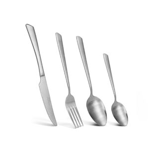 Komplektā parasti ietilpst dakšas, naži, karotes, tējkarotes un citi nepieciešamie piederumi galda noformēšanai.