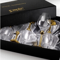 Šis ekskluzīvais komplekts izceļas ar unikālu „Zepter“ inovāciju – patentētu, kompleksu fiksācijas mehānismu, kas ļauj sekundes daļā savienot vai atvienot glāzes kājiņu no stikla daļas. Tas sniedz nepārspējamu elastību: apzeltītās kājiņas ir universālas un piemērotas visu veidu komplektā esošajām glāzēm. Nepieciešamības gadījumā stikla daļu var viegli nomainīt vai kombinēt ar citiem „Zepter“ sistēmas traukiem.