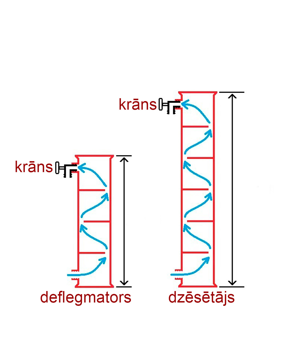 Deflegmatora augstums 200 mm, 9 caurules pa 10 mm, 3 starpsienas, jauda līdz 2500 W*;