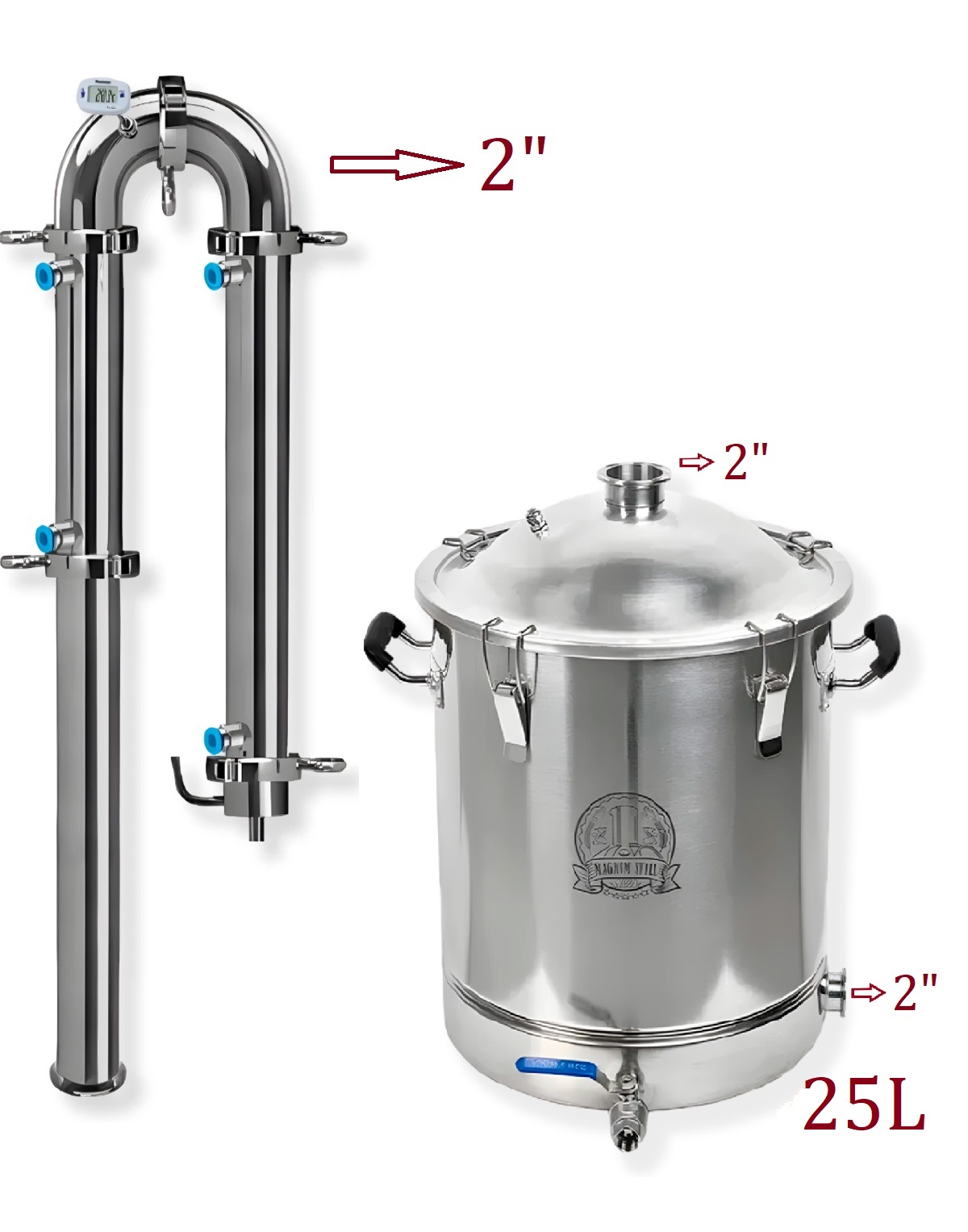 Kolonna Magnum Turbo (2″ clamp-savienojums) ar 25 litru kupola tvertni (ar izvadu 2″ cauruļveida elektriskajam sildītājam).
