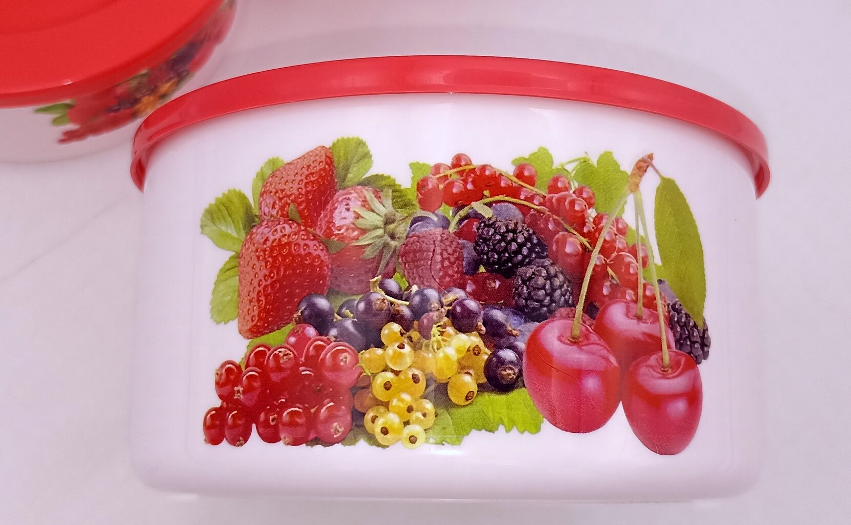 - Izturīgs dekors: Trauciņi rotāti ar pievilcīgu ogu un augļu motīvu. Dekors droši turas pie korpusa, lietošanas laikā nelobās un ir izturīgs pret bojājumiem.