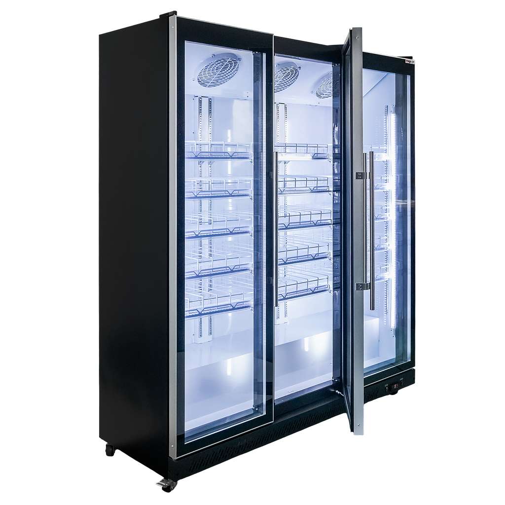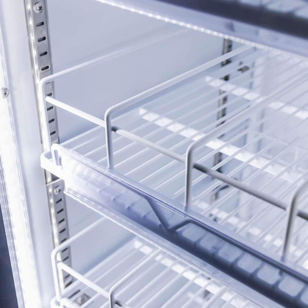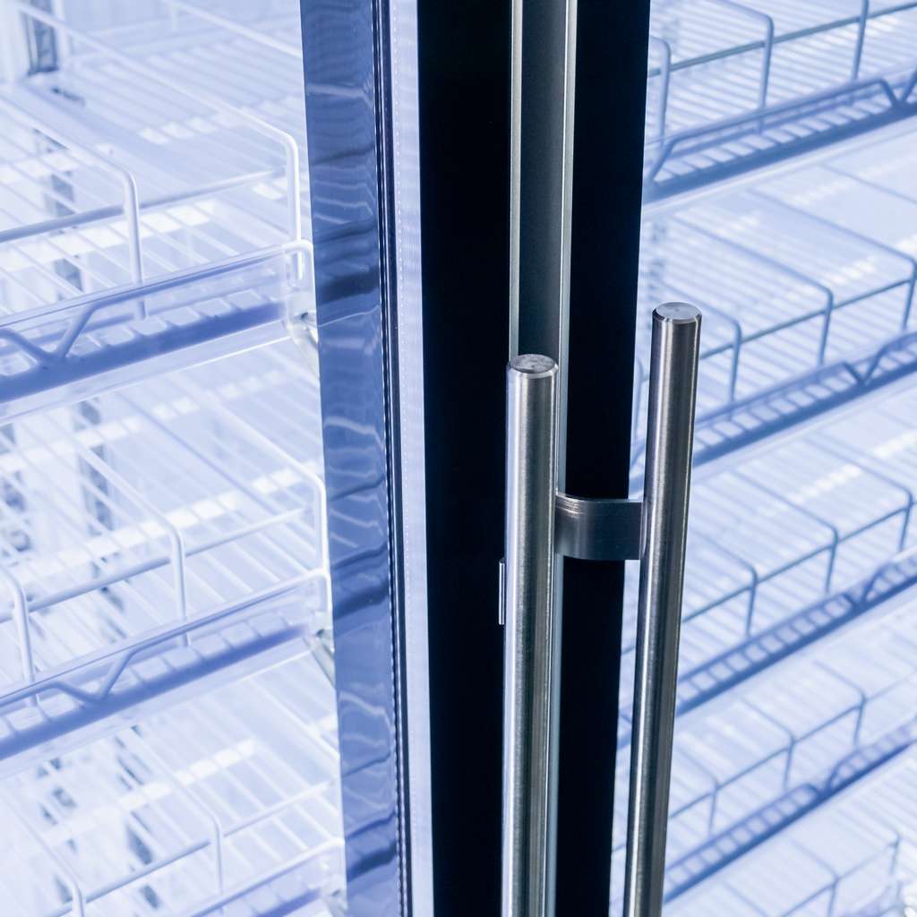 Vertikālais LED apgaismojums pie katrām durvīm garantē labu preču redzamību bez tumšām zonām.