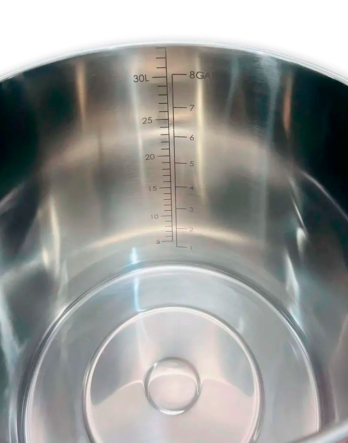 1) 33 litru destilācijas tvertne ar kupola vāku 2″ clamp-savienojumam, pārtikai paredzēts nerūsējošais tērauds AISI304;