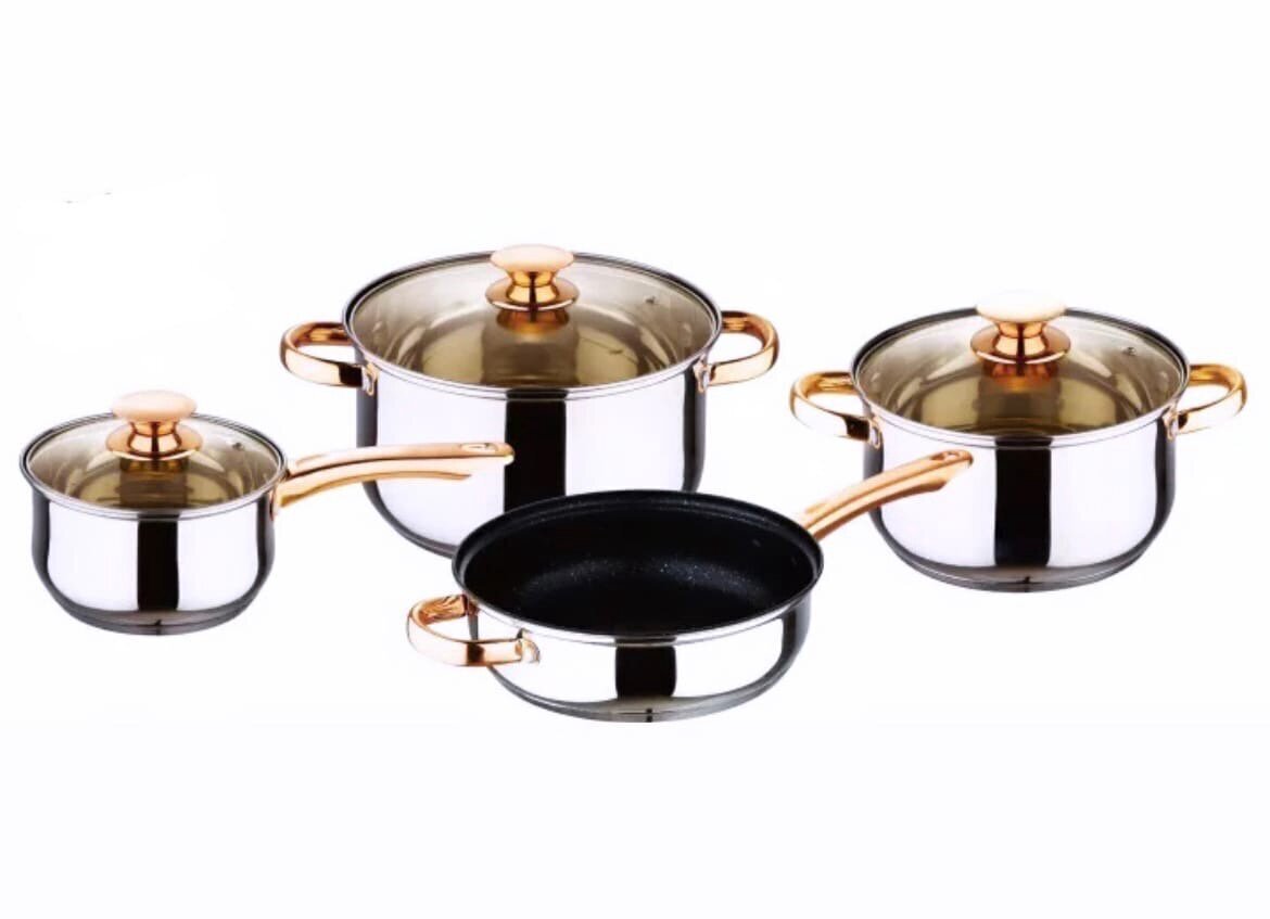 Šis 4 daļu trauku komplekts ir izgatavots no augstākās kvalitātes nerūsējošā tērauda, kas tiek novērtēts tā izturības, higiēnas un vieglās kopšanas dēļ. Komplekts veidots tā, lai apmierinātu pamata ēdiena gatavošanas vajadzības – no zupas vārīšanas līdz cepešu cepšanai.
