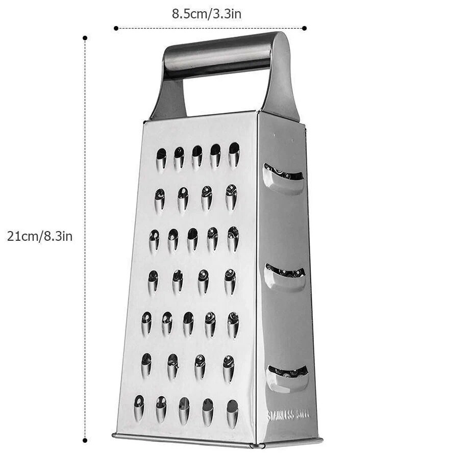 Šī 4 pusējas rīve izceļas ne tikai ar savu funkcionalitāti, bet arī ar rūpēm par lietotāja drošību. Tas ir neaizstājams palīgs jūsu virtuvē, kas ļauj ātri sasmalcināt sieru, dārzeņus vai augļus, nodrošinot ērtu un drošu darba procesu.