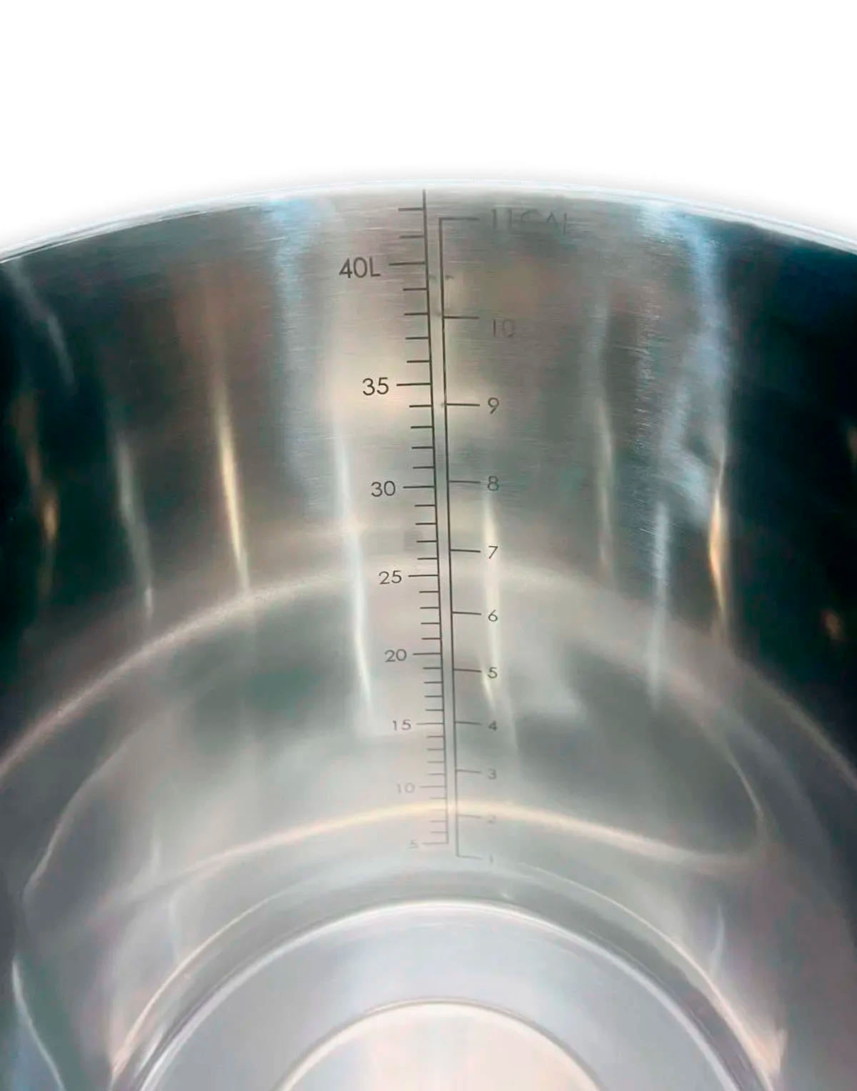 1) 43 litru destilācijas tvertne ar kupola vāku 2″ clamp-savienojumam, pārtikai paredzēts nerūsējošais tērauds AISI304;