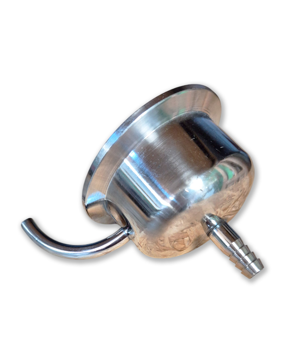 1) 60 litru destilācijas tvertne ar kupola vāku 2″ clamp-savienojumam, pārtikai paredzēts nerūsējošais tērauds AISI304;