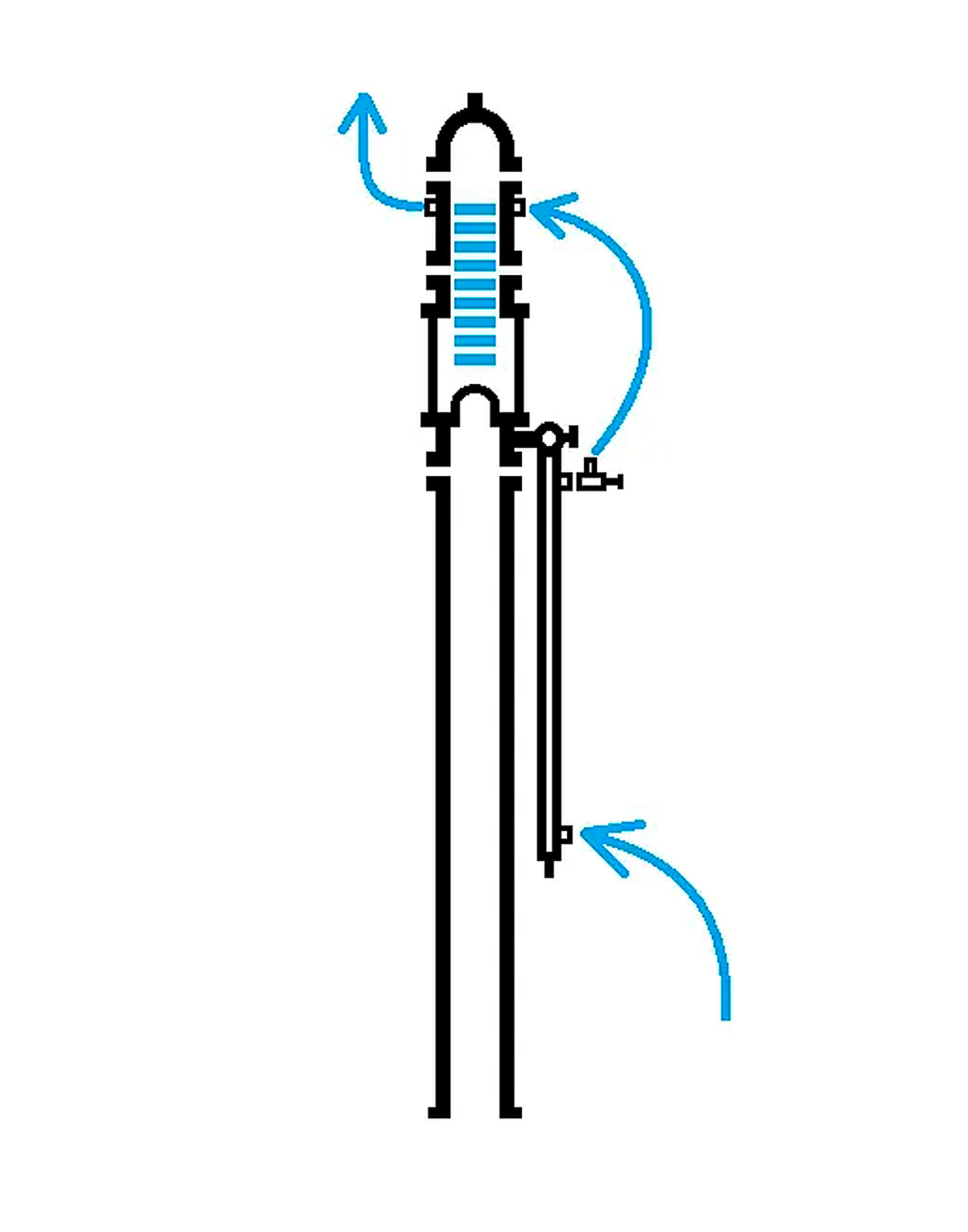 Kolonna Magnum Spirit (2″ clamp-savienojums) ar 60 litru kupola tvertni (ar izvadu 2″ cauruļveida elektriskajam sildītājam).