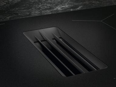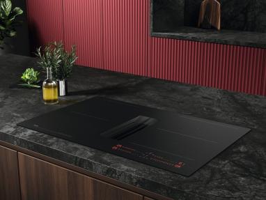 - Integrēts tvaika nosūcējs: tvaika nosūkšanas sistēma ir iebūvēta plīts virsmas centrā, tādējādi ietaupot vietu virtuves telpā virs ierīces.