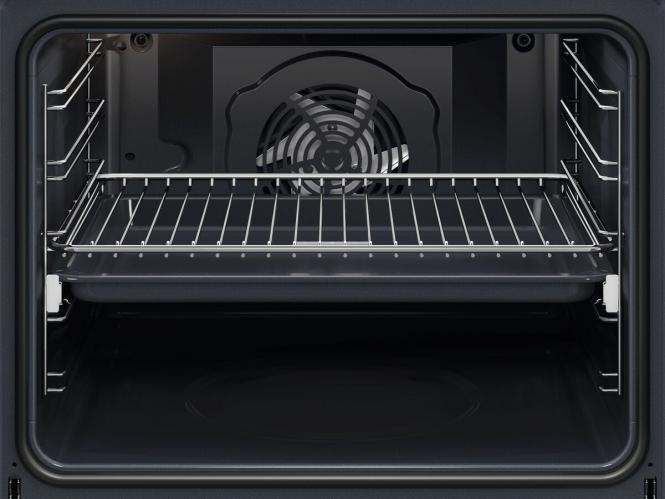 Katra detaļa ir radīta Jūsu komfortam. Cepeškrāsns darbojas īpaši klusi – tās trokšņa līmenis sasniedz tikai 44 dB. Vadība ir vienkārša un ērta ar skaidru LED ekrānu un iespiežamiem rokturiem, kas rada līdzenu virsmu un atvieglo tīrīšanu. Komplektā esošās teleskopiskās sliedes ļaus ērti un droši izvilkt karstas pannas.