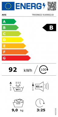 - Enerģijas patēriņš: 92 kWh / 100 cikliem
