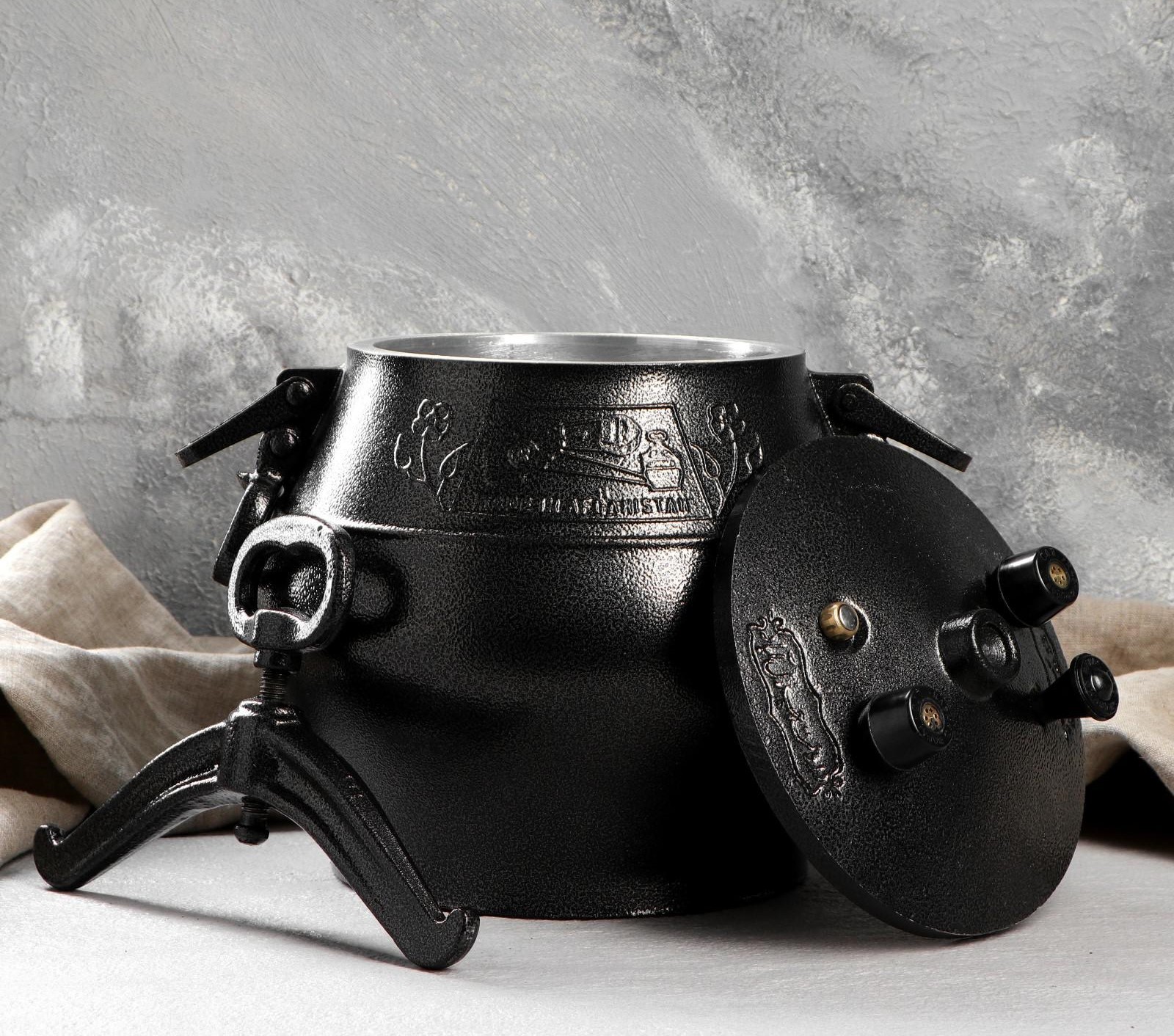 Afghan kazan ir no bieza alumīnija izgatavota spiediena katls, ko var izmantot gan mājās, gan kempingos.