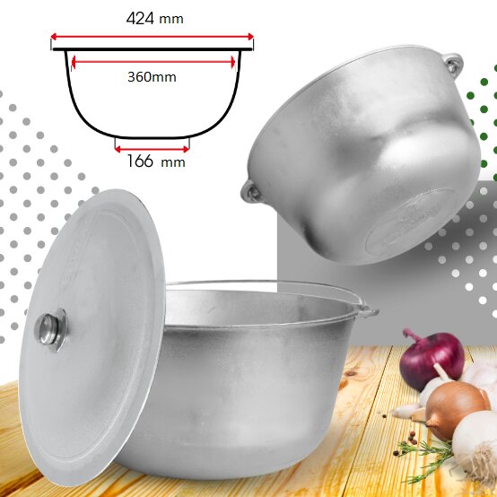 Šis 15 litru „Brizoll“ tūrisma katls ir ideāla izvēle lielām kompānijām, kam patīk pavadīt laiku dabā, medīt vai makšķerēt. Izgatavots no augstas kvalitātes alumīnija, šis trauks izceļas ar lieliskām siltuma sadales īpašībām, kas ļauj ātri un garšīgi pagatavot sautējumus vai citus lauka ēdienus.