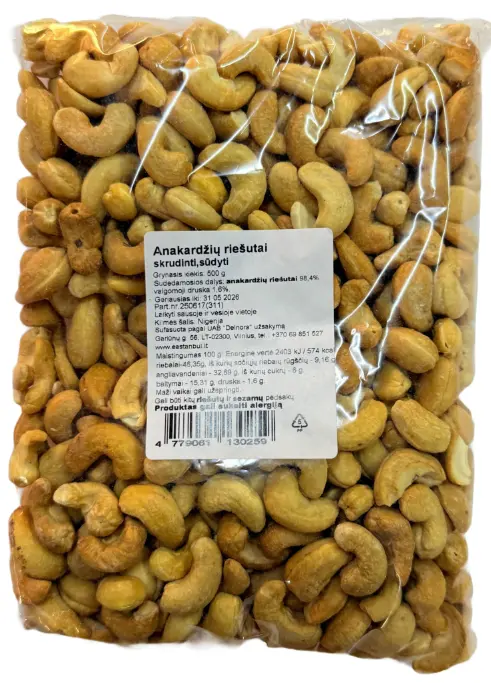 Atvērtu iepakojumu izlietojiet dažu nedēļu laikā, lai rieksti nezaudētu kraukšķīgumu.