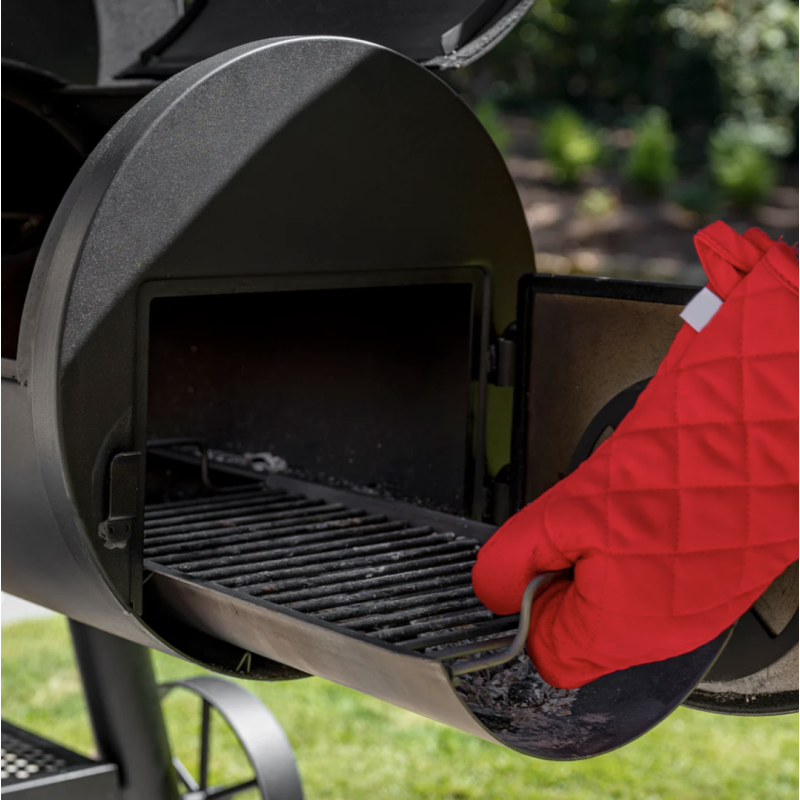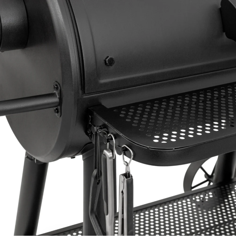 - Komplektā – Side Fire Box piederums, kas ļauj kūpināt gaļu “Teksasas stilā” un iegūt perfektu garšu un tekstūru