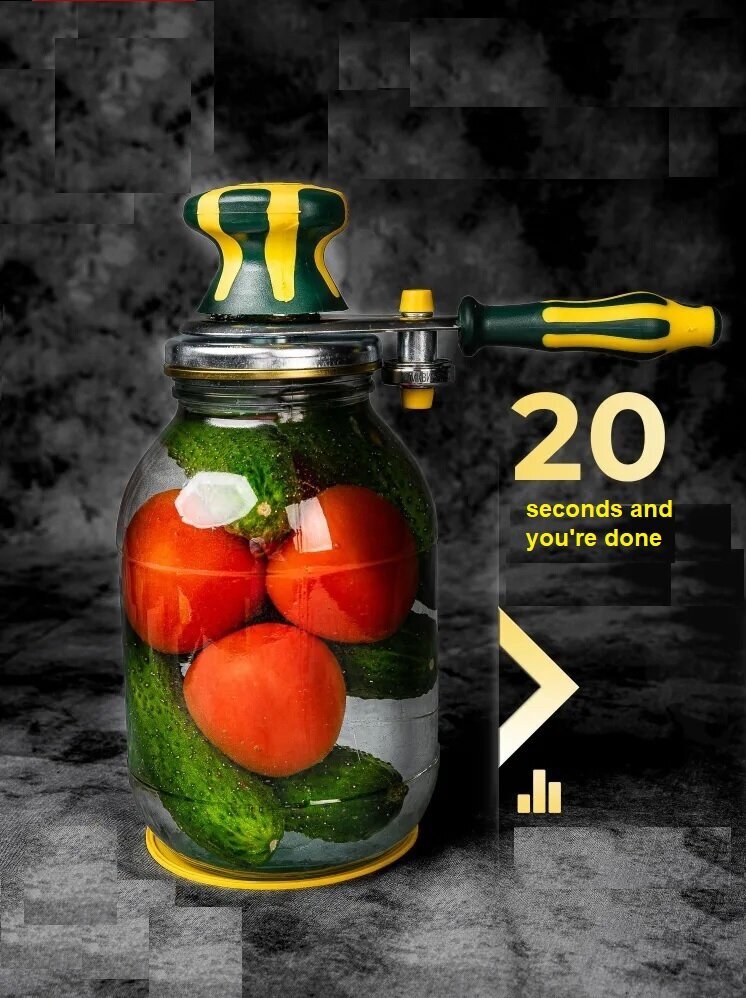 - Drošība: Ierīce neiesprūst un nebojā vāciņa malas, nodrošinot hermētisku noslēgšanu.