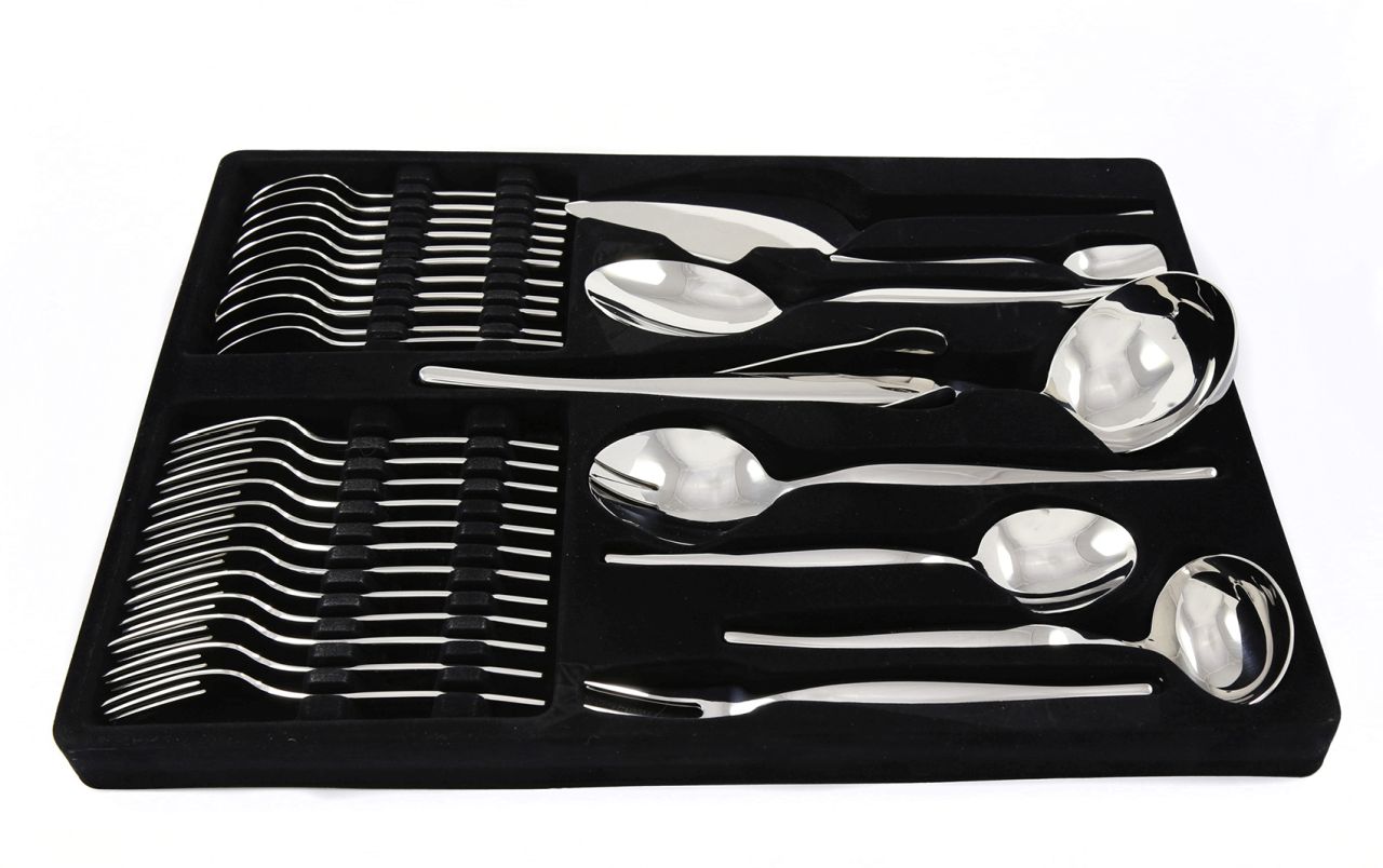Pilns 72 daļu galda piederumu komplekts, kas paredzēts 12 personām. Komplektā ir visi iespējamie instrumenti – no pamata līdz servēšanas – kas nepieciešami greznam galda klājumam. Ideāli piemērots kā kāzu, mājas ievākšanas vai cita svarīga notikuma dāvana.