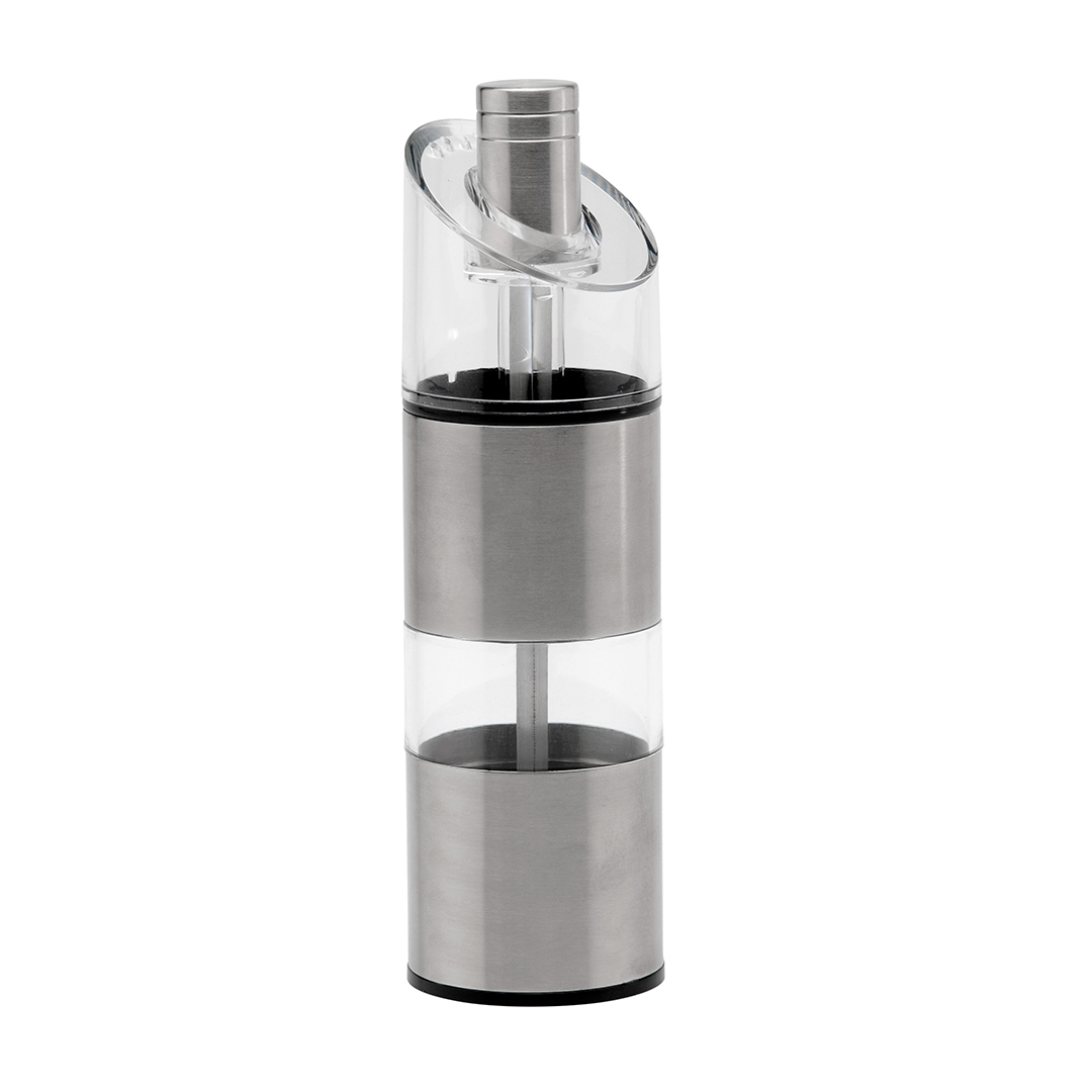 - Gudrs 2-in-1 dizains: Viens rīks veic divas funkcijas, tādējādi ietaupot vietu uz jūsu galda vai virtuves virsmas. Caurspīdīgais akrila korpuss ļauj vienmēr redzēt, cik daudz sāls un piparu ir palicis.
