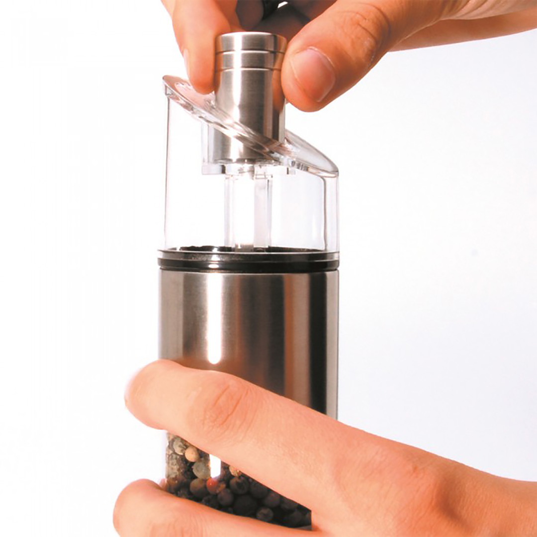 Nē, papildināt ir ļoti vienkārši. Vienkārši jāatskrūvē augšējā vai apakšējā nerūsējošā tērauda daļa un pa atveri jāieber sāli vai piparus atbilstošajā nodalījumā.