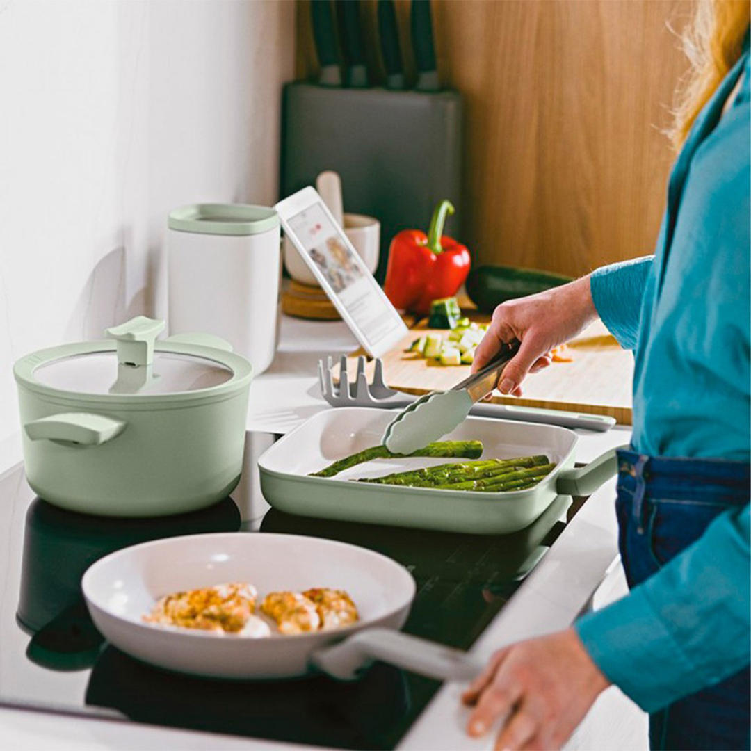 • 100% ekoloģiska un veselībai nekaitīga keramikas neielipoša pārklājums Cera Green (35-40 mikroni), kas ļauj gatavot praktiski bez eļļas