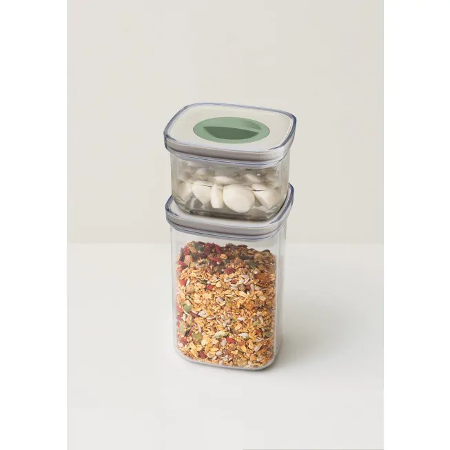 Šis dažāda izmēra konteineru komplekts ir ideāli piemērots, lai uzglabātu dažādus beztaras produktus: kafijas pupiņas, tēju, miltus, cukuru, makaronus, rīsus, riekstus, cepumus vai sausās brokastis. Pilnīgā hermētiskuma dēļ tajos varat uzglabāt arī šķidrumus ledusskapī.
