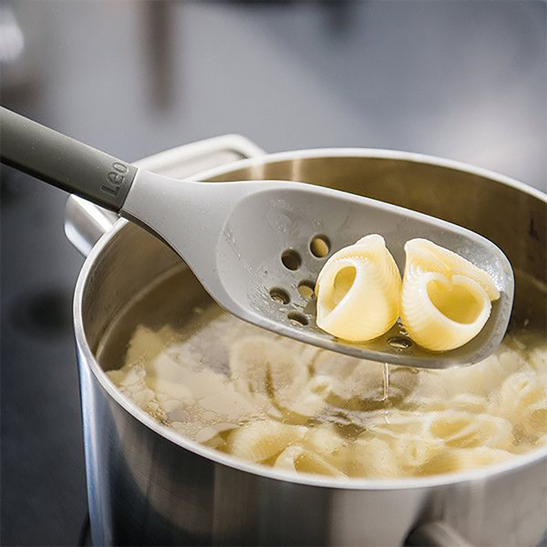 Iepazīstinām ar LEO kolekcijas caurumaino karoti – neaizstājamu rīku, kad nepieciešams izņemt pārtikas produktus no verdoša ūdens, buljona vai eļļas. Šī karote ir izstrādāta tā, lai padarītu jūsu darbu virtuvē pēc iespējas ērtāku un drošāku. Tās darba daļa ir izgatavota no karstumizturīga silikona, tāpēc varat droši grebt pelmeņus vai dārzeņus pat no visjutīgākajiem, ar nelipīgu pārklājumu pārklātiem katliem, nebaidoties tos saskrāpēt.