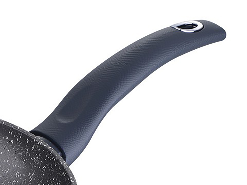 „Orion“ kolekcijas īpašais akcents ir hromēts rokturis ar pelēku „Soft-Touch“ pārklājumu. Tas ne tikai izskatās grezni, bet arī nodrošina drošu un ērtu satvērienu, jo gatavošanas laikā neuzkarst. Pannas dizains ar marmora rakstu piešķir jūsu virtuvei mūsdienīgumu un eleganci.