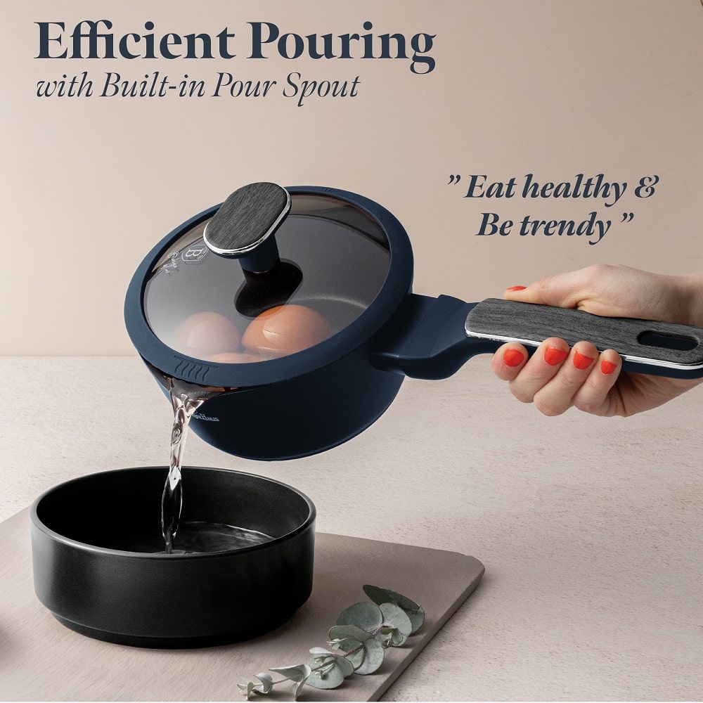Pārvērtiet savu virtuvi par stila un funkcionalitātes oāzi ar “Berlinger Haus BH-8382” komplektu no ekskluzīvās “Deep Sea” kolekcijas. Bagātīgā, matētā zilā krāsa, kas apvienota ar pelēkas koka imitācijas rokturiem, rada modernu un greznu izskatu. Šie ir trauki, ar kuriem jūs ne tikai gatavosiet, bet arī leposieties tos pasniedzot uz galda.