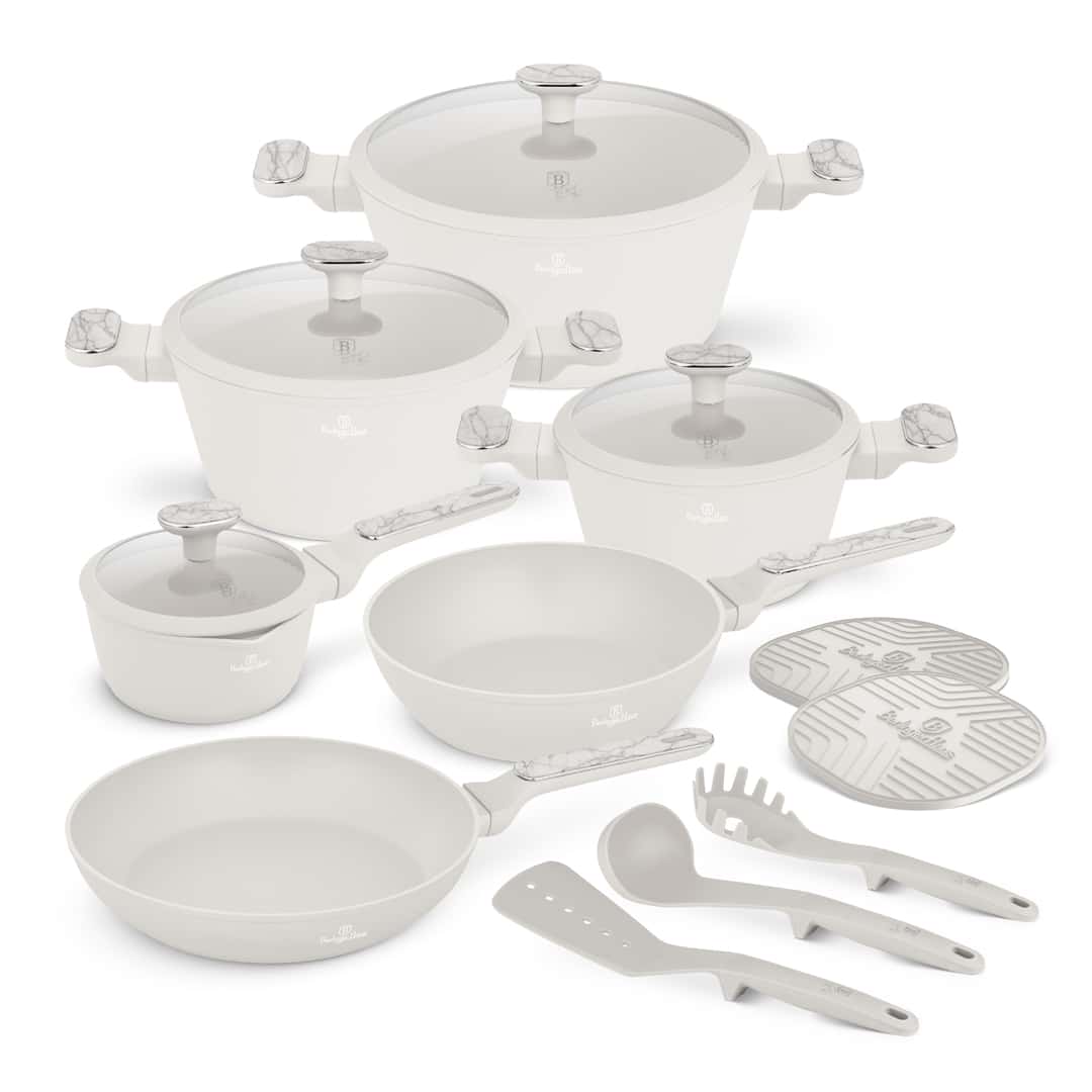 Atjaunojiet savu virtuvi ar “Berlinger Haus BH8401 Sahara Marble” kolekciju. Šis komplekts apvieno estētiku un funkcionalitāti: matēta krēmkrāsa apvienota ar marmora efekta rokturiem, un kalta alumīnija korpuss nodrošina ilgmūžību. Tie nav tikai trauki, tas ir interjera elements, kas atvieglos ikdienas ēdiena gatavošanu.