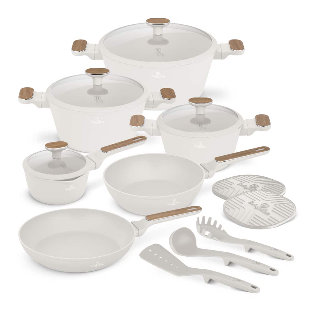 Piešķiriet savai virtuvei mūsdienīgumu ar izsmalcināto “Berlinger Haus” kolekciju “Sahara Nordic”. Šis 15 daļu komplekts apvieno minimālistisku skandināvu dizainu ar vismodernākajām gatavošanas tehnoloģijām. Matēta krēmkrāsa un ergonomiski rokturi padara ēdiena gatavošanu ne tikai par pienākumu, bet arī par estētisku baudījumu.