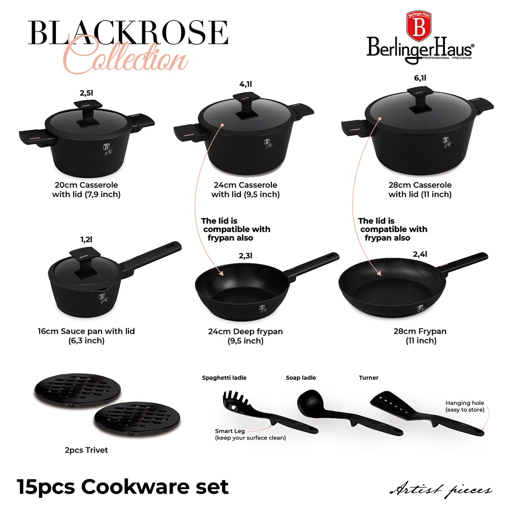 Berlinger Haus BH-8246 Monaco 15 daļu virtuves instrumentu komplekts – augstas kvalitātes nelipīgi, piemērots indukcijai