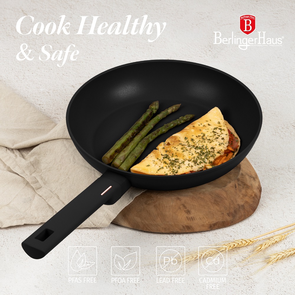 - Cepšanas panna: Ø 28 cm, 5,2 cm dziļums (2,4 L) – lielisks izvēle gaļas cepešanai un dārzeņu apcepšanai.