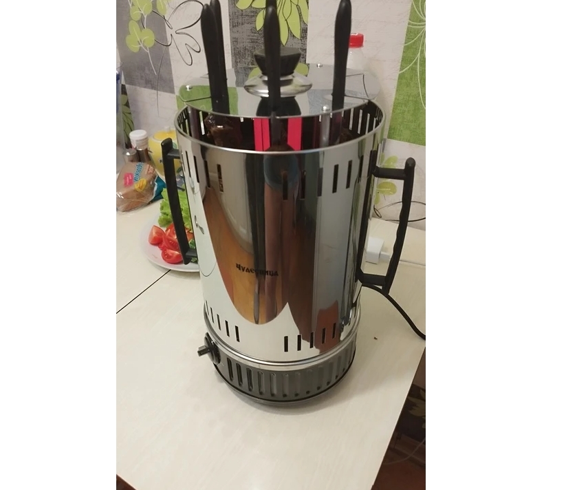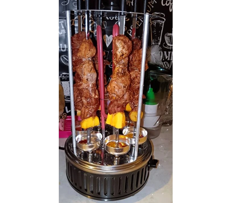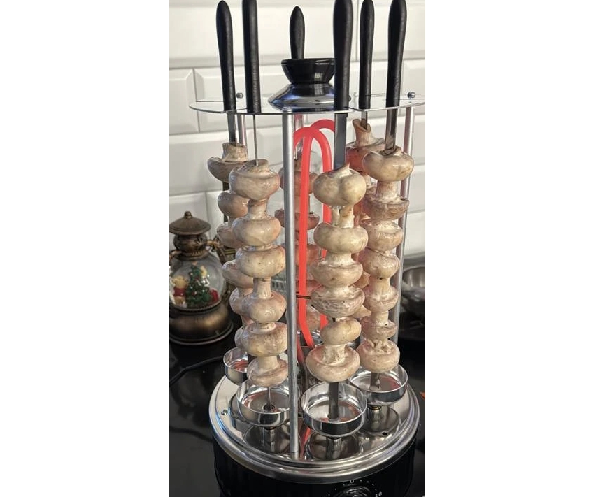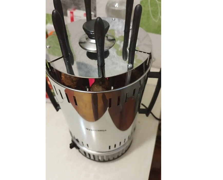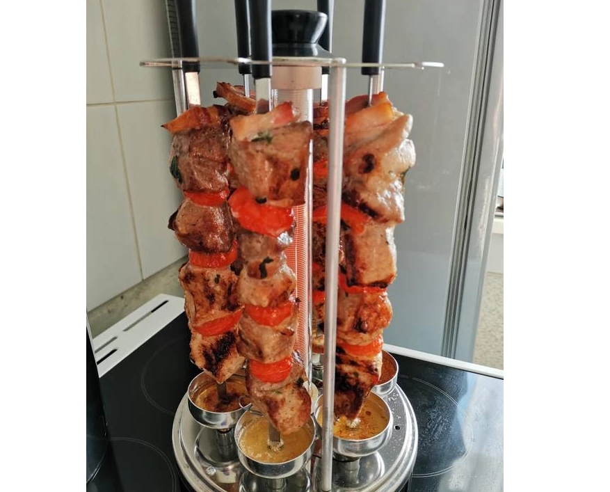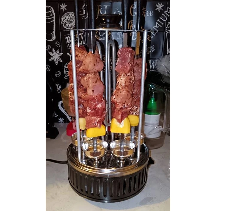 Sadzīves elektriskais vertikālais šašlika grils, kas paredzēts gaļas, zivju un dārzeņu cepšanai uz iesmiem telpās.