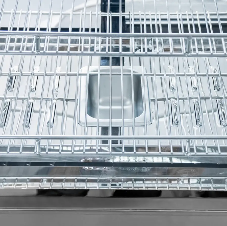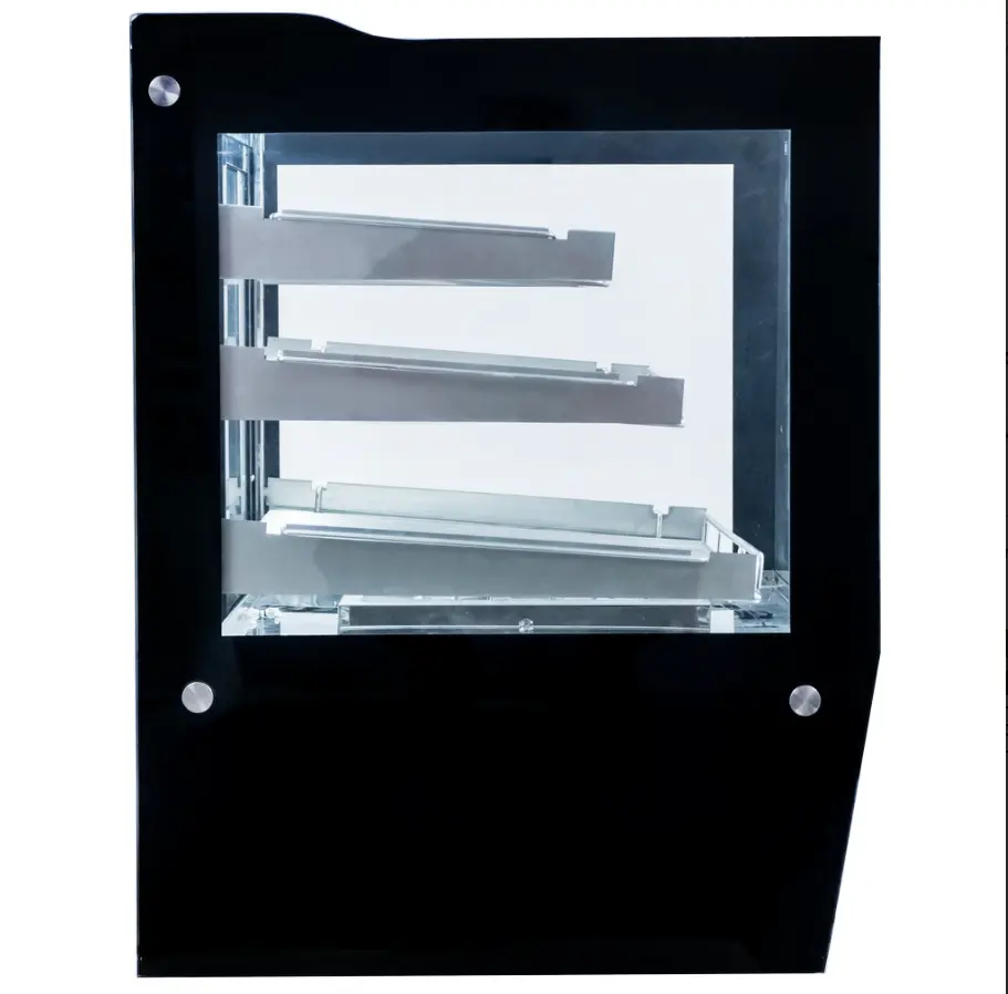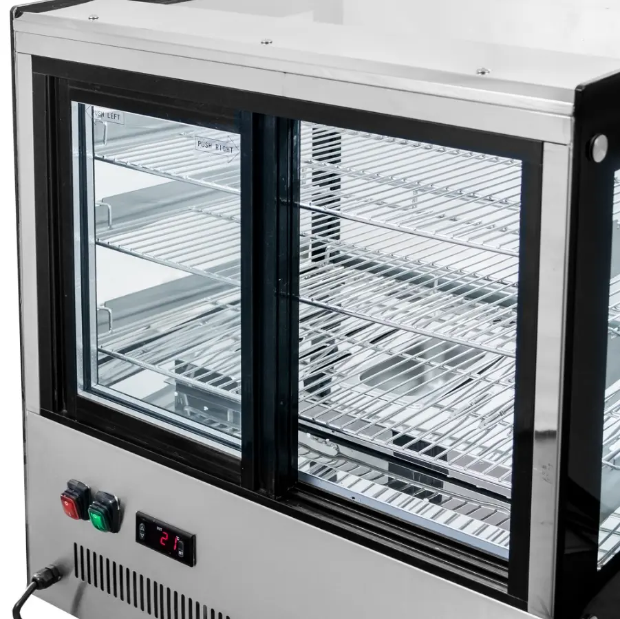 Bīdāmās durvis ir ierīces aizmugurējā pusē, lai apkalpojošais personāls varētu ērti ievietot un izņemt ēdienu. Priekšējais stikls ir taisns un neatveras.