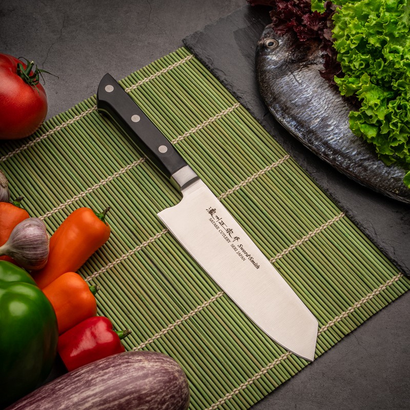 “Bunka” ir šis santoku peilis yra japāņu vairāk funkciju virtuves nazis. Tas ir „Bunka“. Tas ir starpnieka variants starp Gyuto un Nakiri. Ar to platās asmeņu dēļ „Bunka“ nazis lieliski piemērots dārzeņiem sagriešanai smalkām šķēlītēm vai sasmalcināšanai kubikos un tiraini iecirstais trijstūra formas asmenis īpaši praktisks makšķerējot zivis un gaļu.