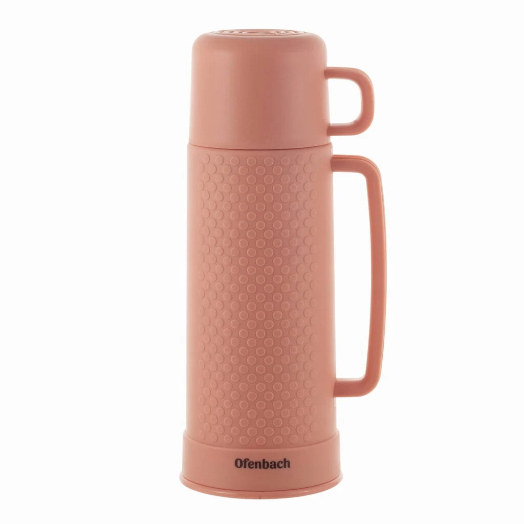 1 l plastmasas termoss ar augstas kvalitātes stikla kolbu. Vāciņš kalpo kā ērta krūzīte. Saglabā dzērienus karstus līdz 12 stundām. Uzmanību: krāsa tiek izvēlēta nejauši. Zīmols: “Ofenbach”.