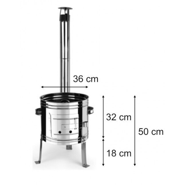 - Iekšējais diametrs 36 cm, augstums 55 cm, kājas garums 23 cm