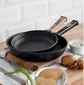 26 cm panna ir visuniversālākā: tajā lieliski ietilpst vairāki cepši, liela dārzeņu sautējuma porcija, cepti kartupeļi visai ģimenei vai liels pīrāgs/sacepums cepeškrāsnī.