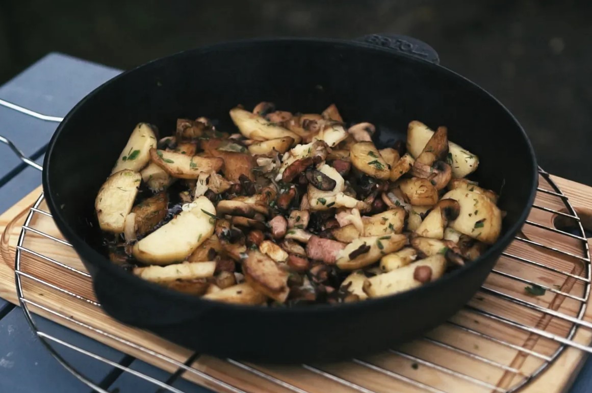- Saderība: Piemērota visu veidu plītīm (gāzes, elektriskajām, indukcijas), cepeškrāsnīm un ugunskuriem.