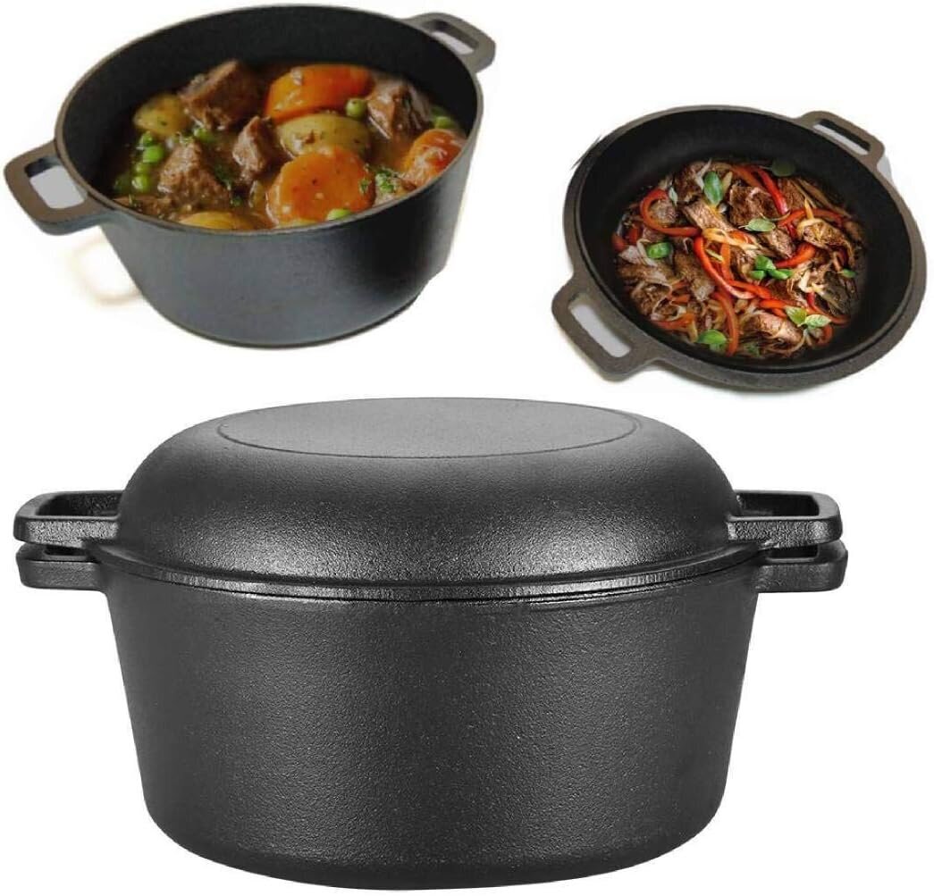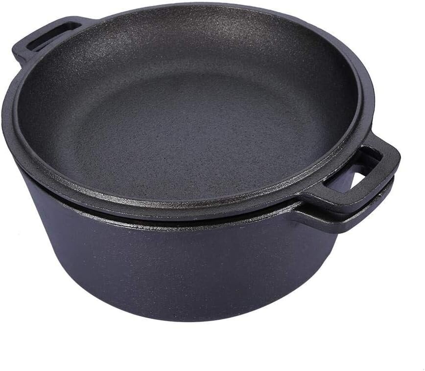 - “Divi vienā” funkcionalitāte: Komplektā ietilpst 5 l katls un čuguna vāks, ko, apgriežot otrādi, var izmantot kā atsevišķu pannu.