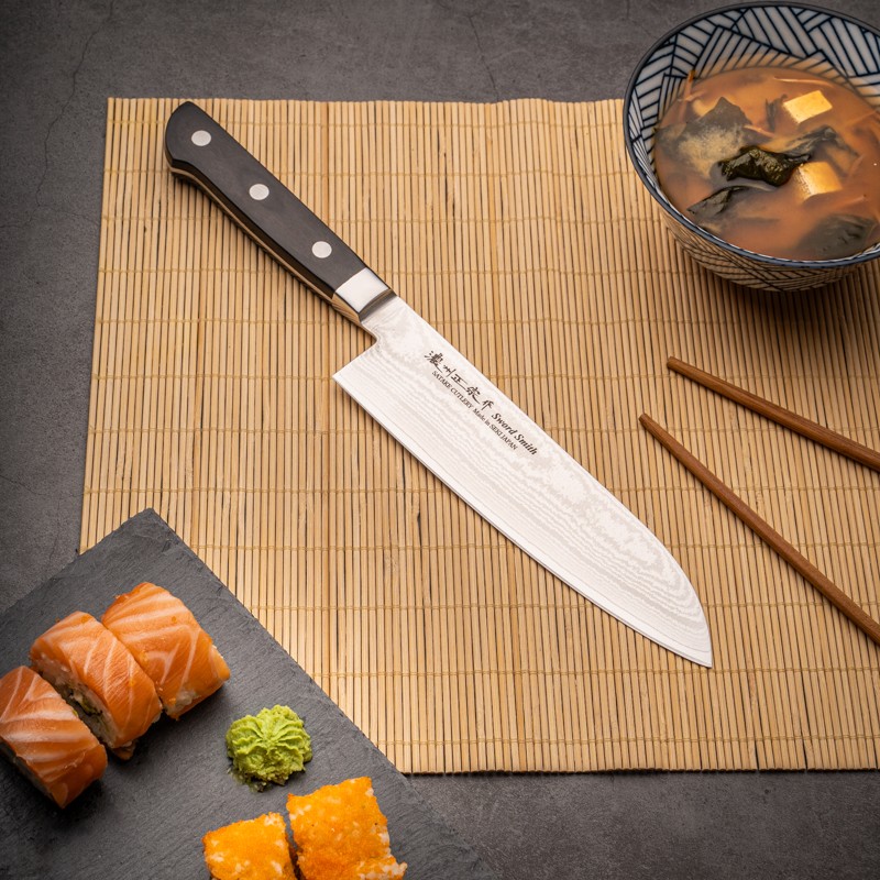 Santoku japāņu valodā nozīmē “trīs vērtības”, citiem vārdiem sakot, šis nazis ir paredzēts gaļas, zivju un dārzeņu filejai. Šis ir japāņu ekvivalents mums zināmajam pavāra nazim.