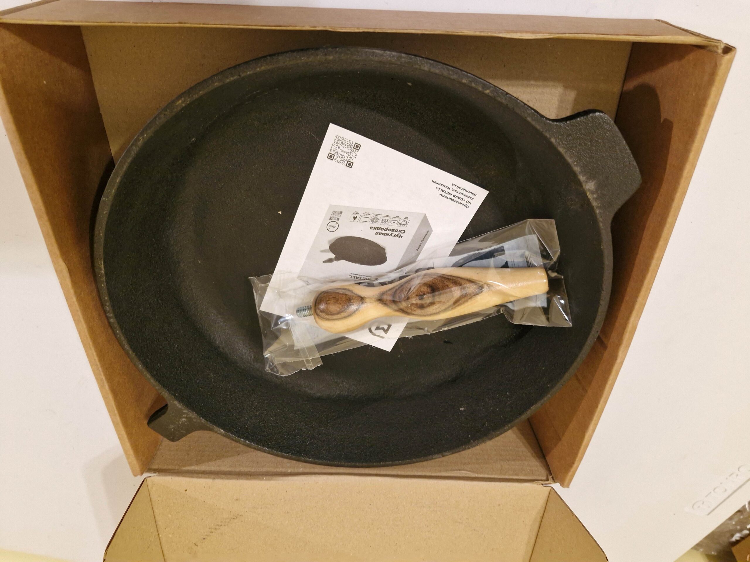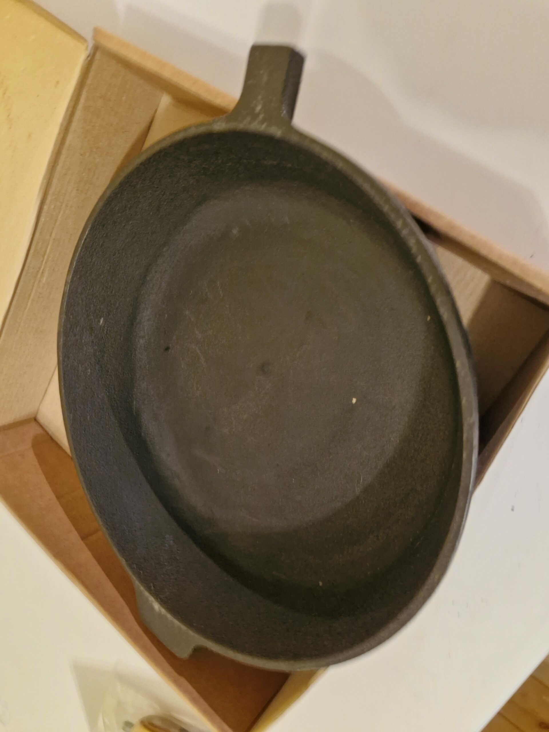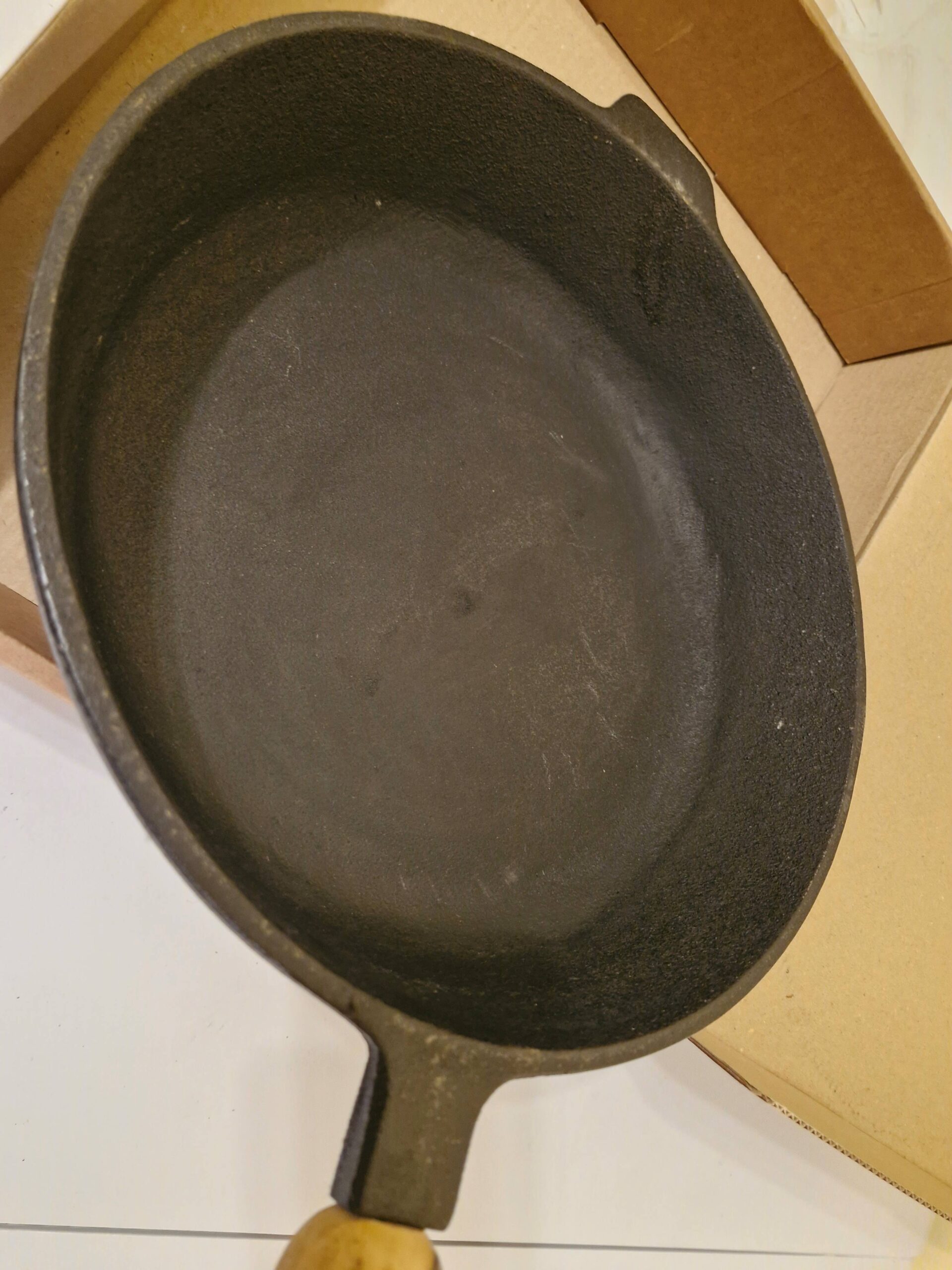 Nav jāuztraucas – tas ir dabiski čuguna izstrādājumiem, ja tos atstāj mitrus. Notīriet rūsu ar cietu sūkli vai sāli, nomazgājiet, labi nosusiniet un atkārtoti veiciet sezonas (ieeļļošanas un karsēšanas) procedūru.