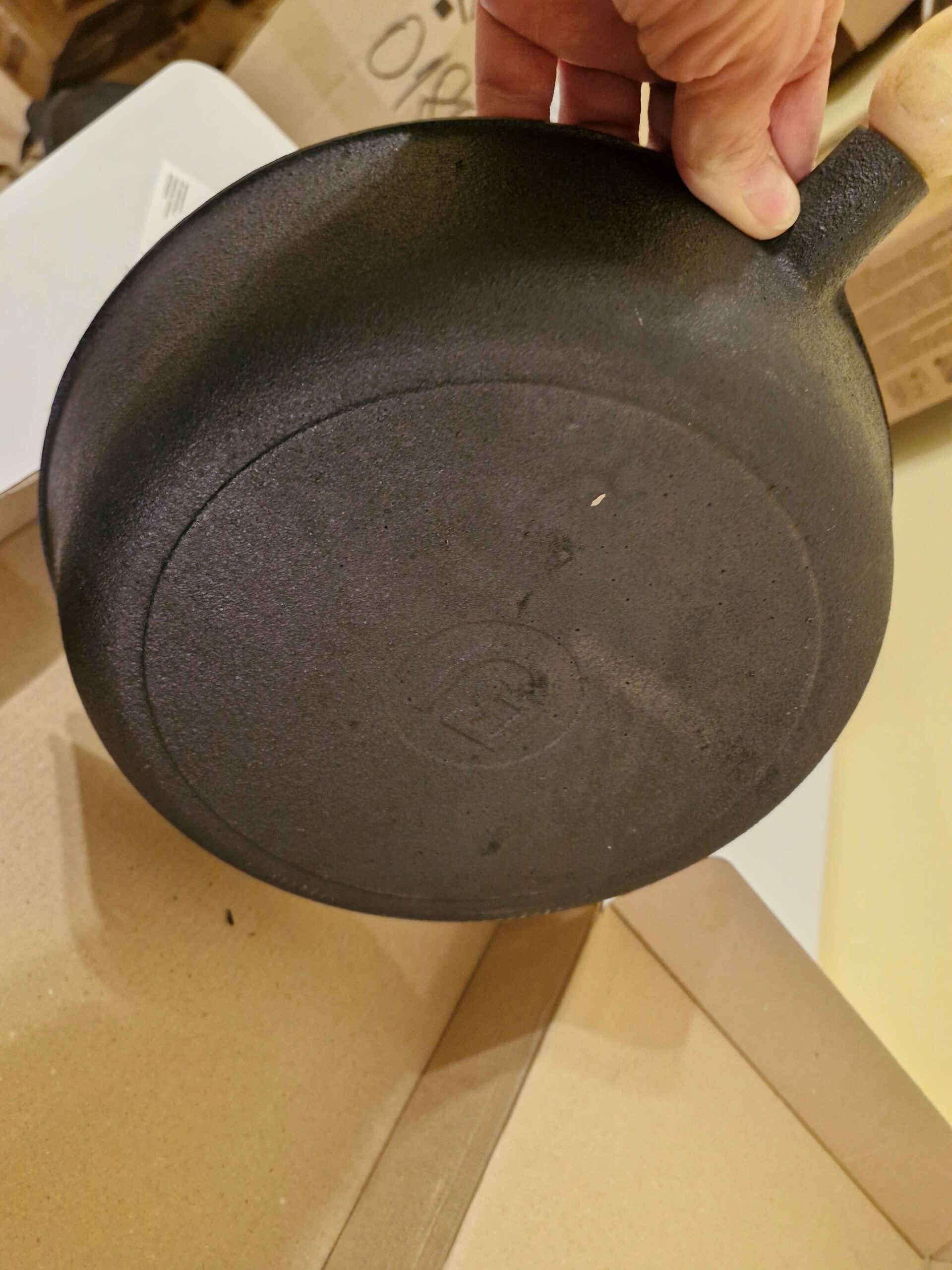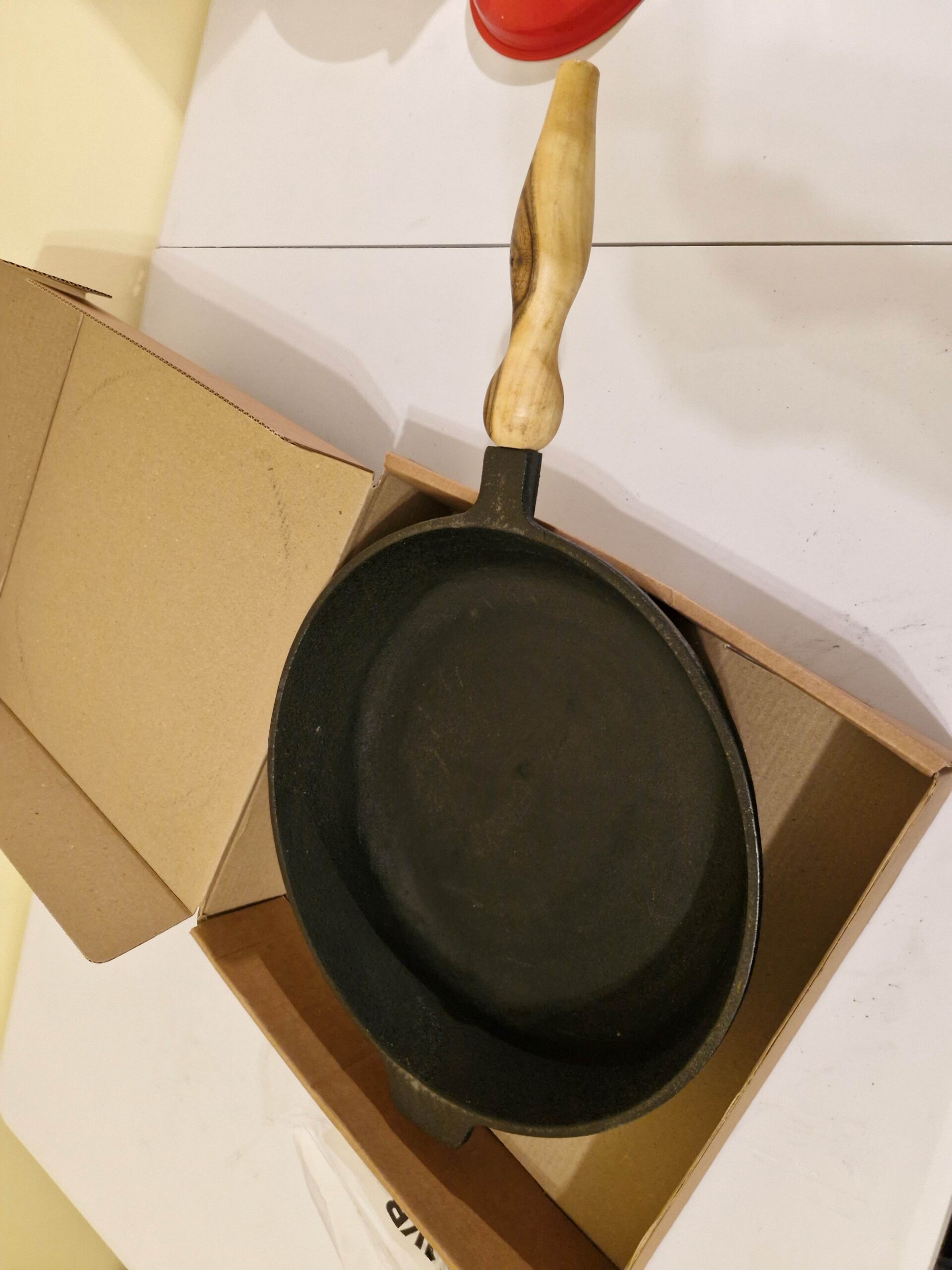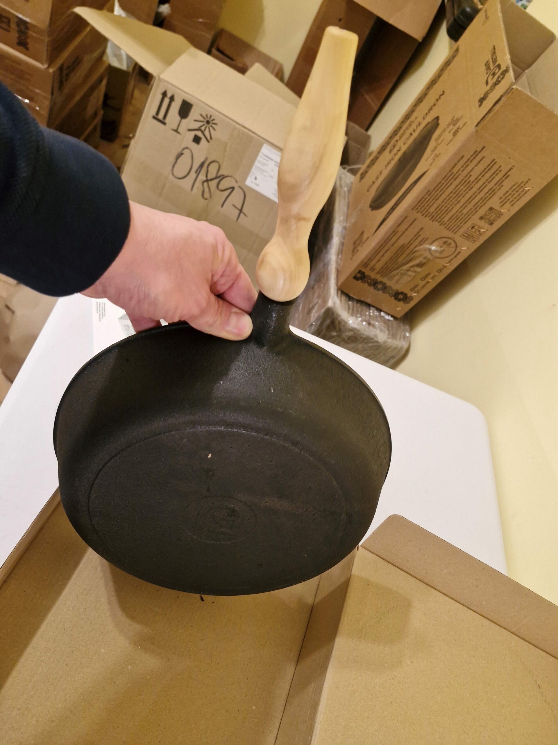 Nav jāuztraucas – tas ir dabiski čuguna izstrādājumiem, ja tos atstāj mitrus. Notīriet rūsu ar cietu sūkli vai sāli, nomazgājiet, labi nosusiniet un atkārtoti veiciet sezonas (ieeļļošanas un karsēšanas) procedūru.