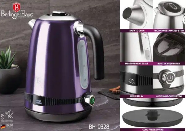 Atklājiet Berlinger Haus digitālo tējkannu BH-9328 no “Purple Eclipse” kolekcijas – unikāla, augstā spīdumā tējkanna ar mūsdienīgu dizainu. Ar klasiskām formām un elegantu violeto nokrāsu, šī tējkanna piešķir eleganci jebkurai virtuvei.