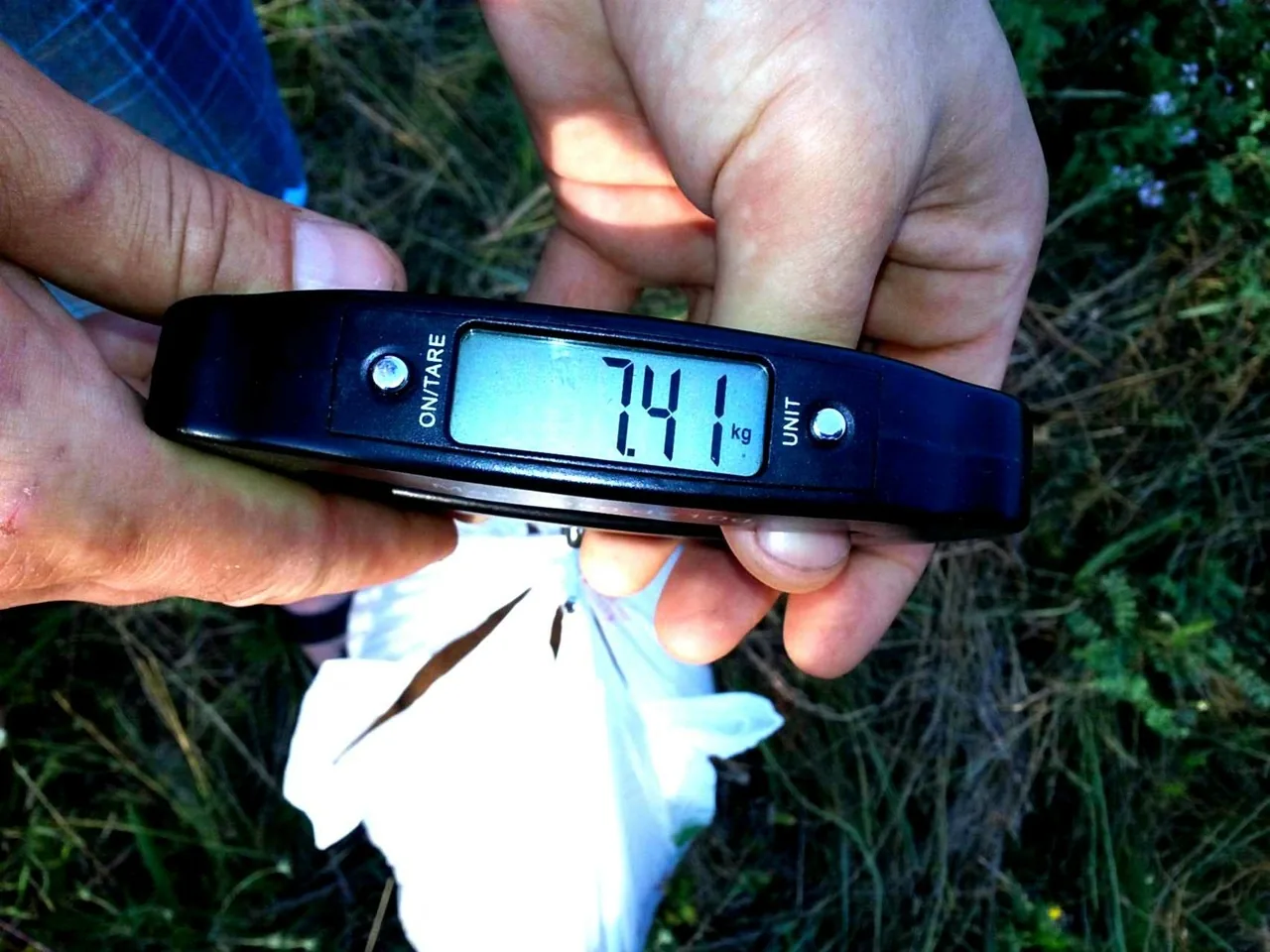 Iesakām zivis ievietot maisā vai tīklā un svērt, izmantojot siksnu, lai pasargātu ierīci un nesabojātu lomu.