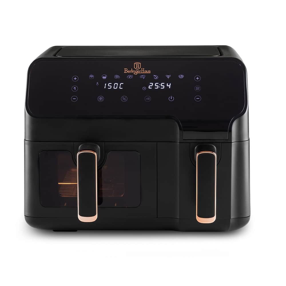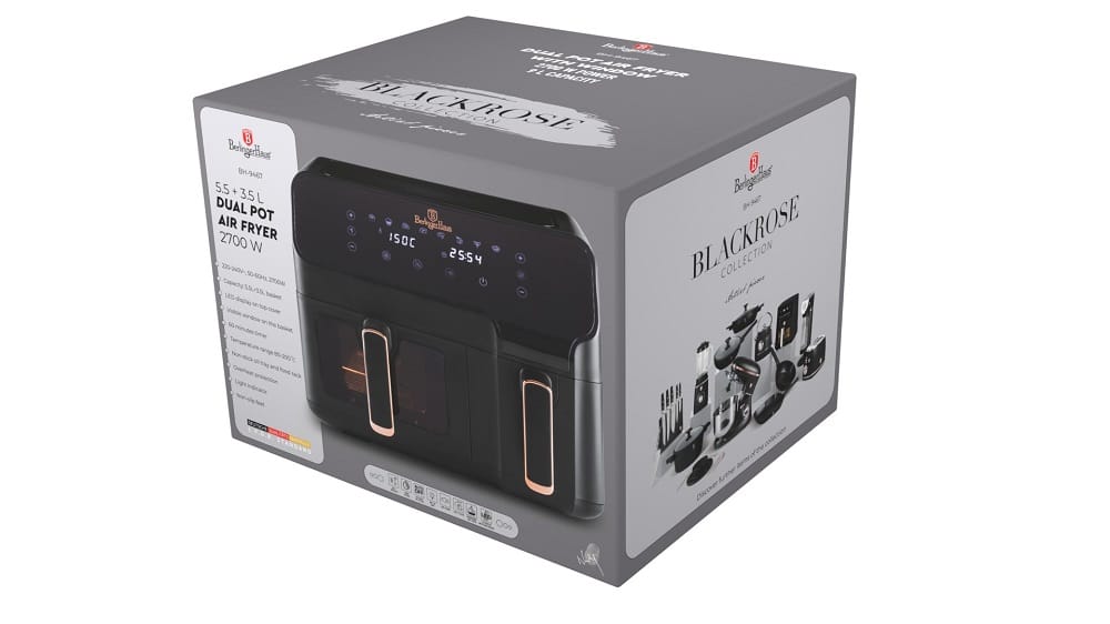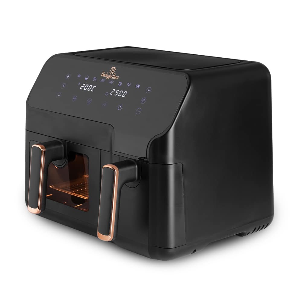 Šis modelis izceļas ar diviem neatkarīgiem cepšanas groziem, kuru kopējā ietilpība ir 9 litri. Jūs varat iestatīt dažādas temperatūras un laiku katrai sekcijai, un sinhronizācijas funkcija nodrošinās, ka abi ēdieni tiks pabeigti gatavot vienlaikus.
