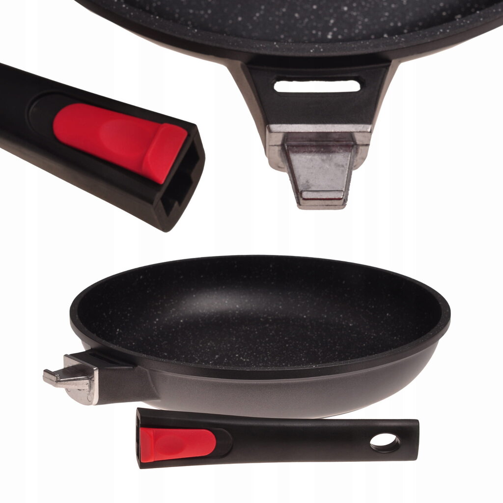 - Pastiprināts pārklājums: Marmora pārklājums, kas bagātināts ar īpaši cietām titāna daļiņām, nodrošina, ka ēdiens nepiedegs, bet pati panna būs izturīga pret skrāpējumiem. Gatavošanai būs nepieciešams minimāls taukvielu daudzums.